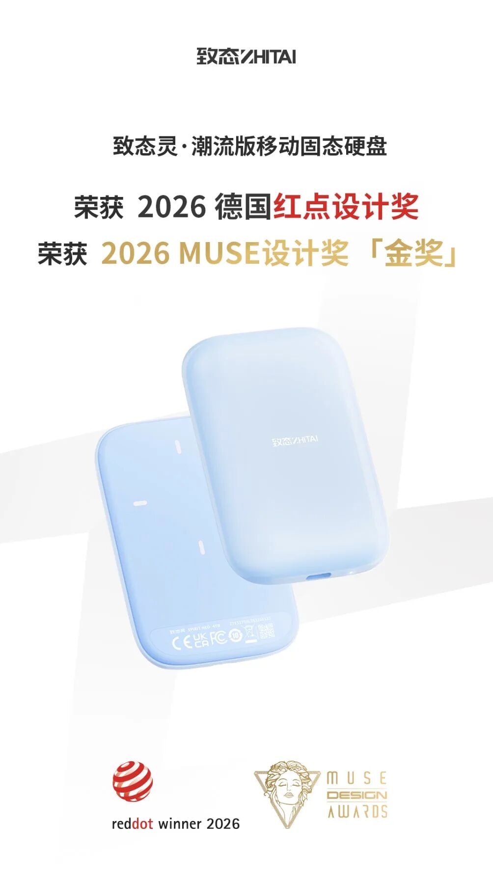 双奖加冕,实力见证!致态灵·潮流版移动固态硬盘斩获红点设计奖与MUSE设计金奖