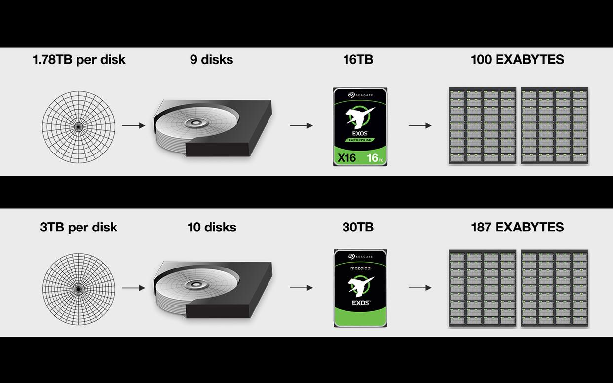 HAMR技术是希捷为了应对当下不断增长的数据需求而开发的下一代机械硬盘的存储技术。HAMR 在每块磁盘上使用一种新型的介质磁技术,让数据位变得比过去更小且密度更高,同时保持磁稳定和热稳定。在写入新数据的过程中,连接到每个记录磁头的小型激光二极管会瞬间加热磁盘上的一个小点,从而使记录磁头每次翻转单个位的磁极性,进而达到写入数据的目的,每个位会在一纳秒内完成加热并冷却,因此 HAMR 技术有效的控制了硬盘温度以及整个存储介质的温度,带来了稳定性和可靠性大幅度提升。